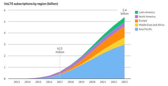 De acordo com o relatório, o Voice Over LTE já foi lançado em mais de 145 redes em pelo menos 70 países ao redor do mundo. A expectativa é que as assinaturas VoLTE cheguem a 5,4 bilhões até o final de 2023.