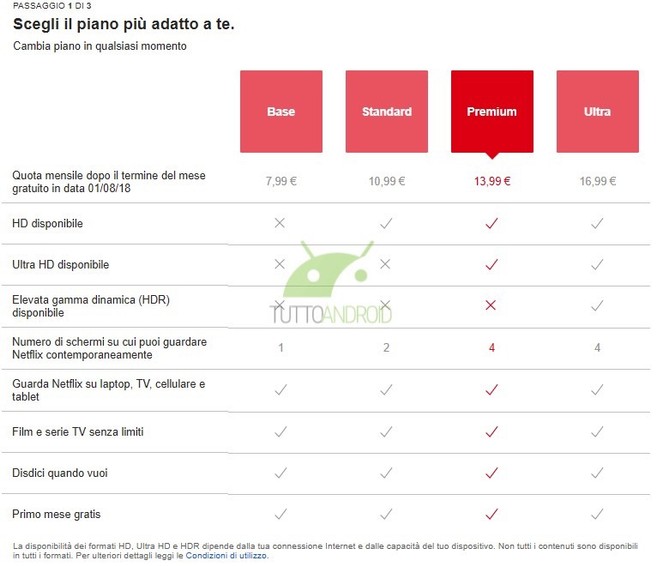 Usuários italianos que afirmam ter recebido a oferta de teste relatam que a assinatura Premium pode ter um downgrade desagradável: em vez de poder assistir ao conteúdo da Netflix simultaneamente em quatro telas, os assinantes Premium terão essa capacidade reduzida para apenas duas telas.