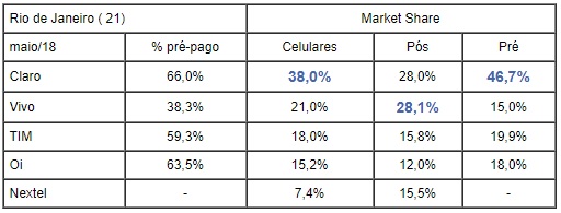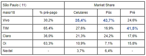 TIM e Oi, operadoras em que o pré-pago representa mais de 60% dos celulares, vem perdendo market share.
