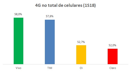 O 4G se tornou a principal tecnologia de celular do país em 2017 e no final do primeiro semestre de 2018, os aparelhos 4G já superam a soma daqueles com tecnologia 3G e 2G.