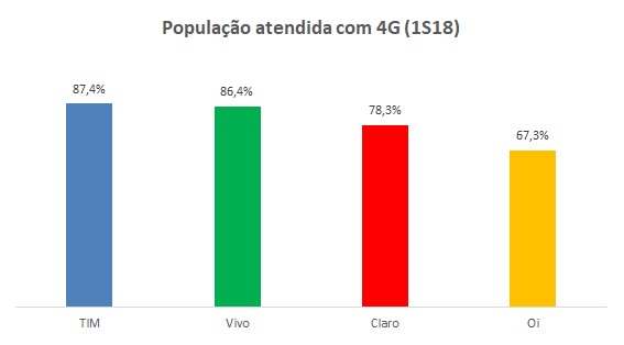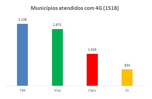 Apesar da expansão da Vivo e da Claro, TIM é quem lidera em quantidade de municípios e população atendida, seguida pela Vivo.