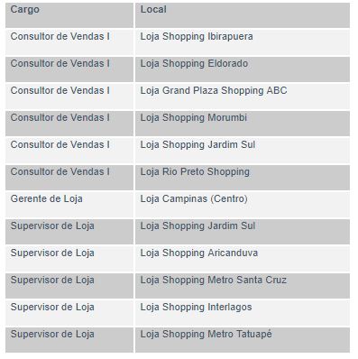 As cinco vagas de supervisor e uma para gerente de loja também destacam como diferenciais bons conhecimentos com informática, interesse por tecnologia e atendimento a clientes.