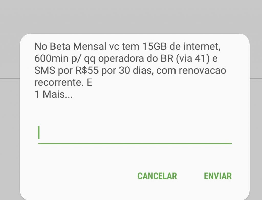 | Mesmo sem ser Beta Lab, alguns clientes vêm recebendo mensagens da TIM oferecendo mais internet no plano pelo mesmo preço. |