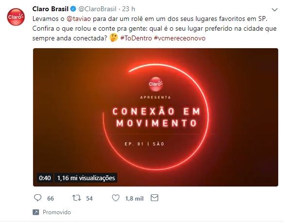 Tavião, então, convida o público a conferir a ficar conectado nas redes sociais da Claro para saber onde os dois vão e o que eles irão fazer. Assista ao vídeo: