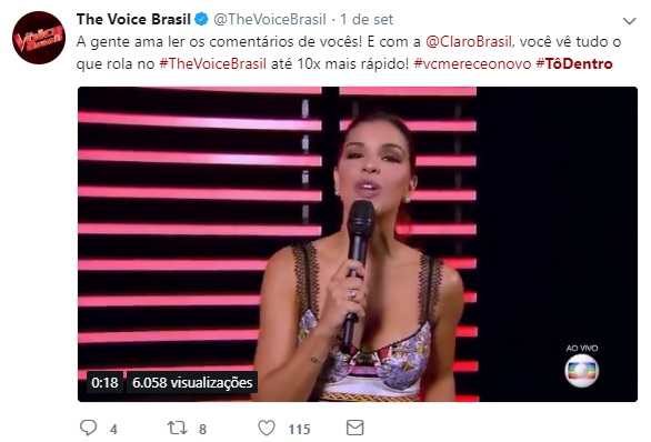 Até o programa The Voice Brasil, da Rede Globo, que é patrocinado pela Claro, entrou na brincadeira e interagiu com a operadora.