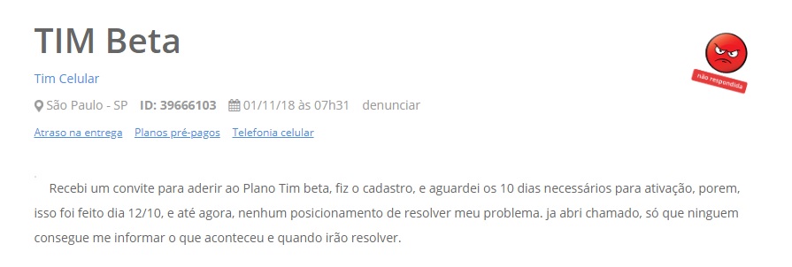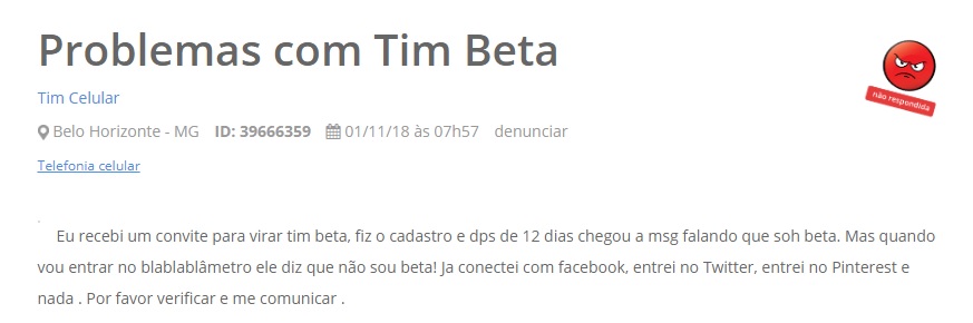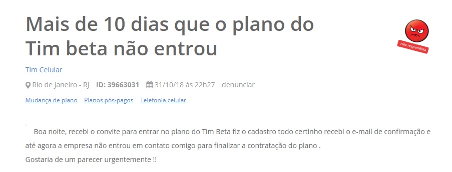 Milhares de clientes da TIM estão revoltados com a operadora por não conseguirem migrar para o plano TIM Beta. Os usuários estão inundando as redes sociais da operadora e os sites de defesa do consumidor com reclamações sobre o problema e não obtém nenhuma resposta.