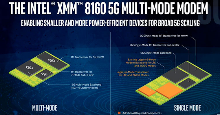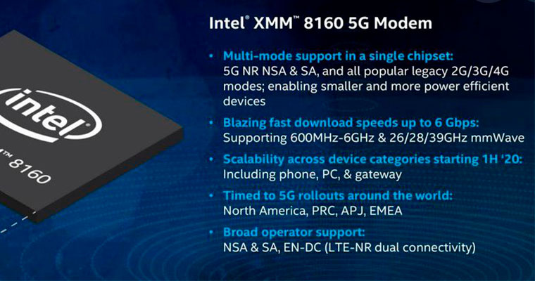 A Intel destaca que o XM8160 é o primeiro modem 5G multinúcleos do mercado, reconhecendo, além do 5G, o 4G e 3G. Um pacote de compatibilidade de tecnologias no mesmo chip.