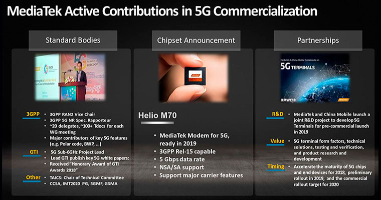 Além do processador a MediaTek também está visando o lançamento de modems separados compatíveis com o 5G, com o objetivo de fechar negócio com fabricantes de smartphones que podem implementar seus chips. O primeiro modem 5G da MediaTek é o Helio M70.