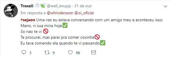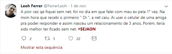 Para divulgar a live de hoje, a Oi está promovendo a hashtag #SejaOn no Twitter. Muitos internautas participaram da brincadeira e enviaram as suas histórias. Veja algumas:
