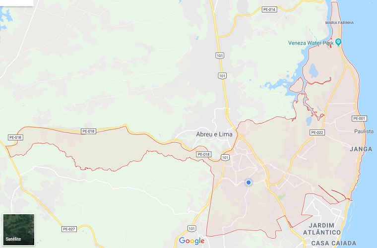 Este é o município de Paulista, região metropolitana do Recife, representado pela marcação vermelha: