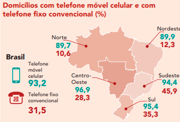 | Dados do IBGE reiteram a presença dos smartphones na casa dos brasileiros e o desuso dos telefones fixo convencionais. |