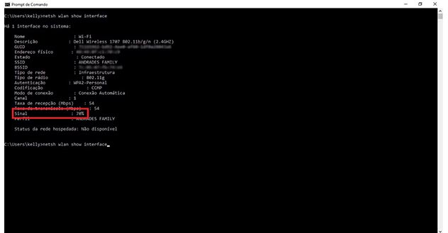 Além de mostrar a qualidade do sinal, esse comando também traz algumas informações adicionais como o protocolo utilizado, a velocidade máxima da rede, o canal usado e outros dados importantes.