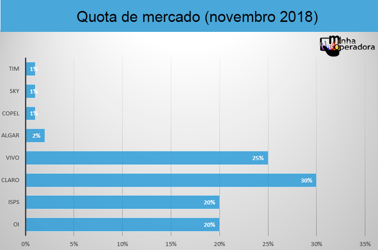 O grupo América Móvil (Claro, Embratel e Net) segue na liderança de mercado, registrando em novembro 9.350.199 clientes, o que corresponde a 30,10% do mercado. Em segundo lugar ficou a Vivo, com 7.594.545 clientes, o que equivale a 24,45% do mercado e em terceiro lugar a empresa Oi, com 6.073.431 clientes, detendo 19,55% do mercado.