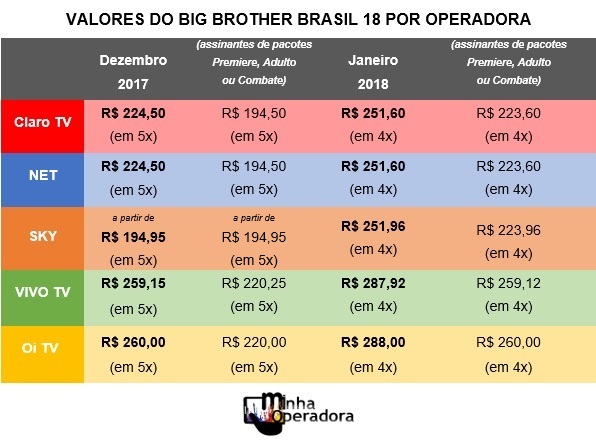 | Em janeiro começa mais uma edição do Big Brother Brasil, confira quanto custa assinar o pay-per-view para não perder nada do reality. |