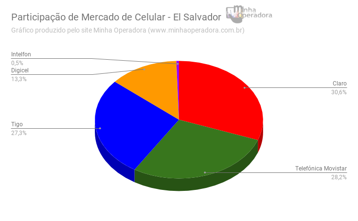 A República de El Salvador abriga 6,37 milhões de habitantes e no final de setembro de 2018 o mercado de telefonia móvel estava dividido assim: