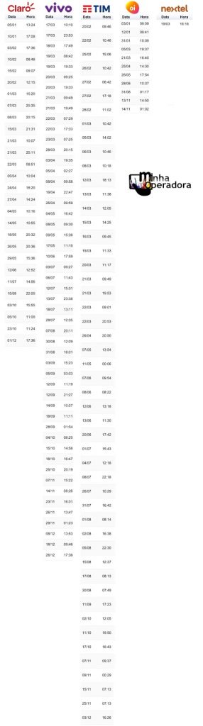 O Minha Operadora também teve acesso as datas das ocorrências de cada companhia de telefonia e internet dentro do Brasil. Com base nesse arquivo, podemos perceber que o mês de março foi o pior para quatro das sete operadoras de telefonia analisadas: TIM (com 15 ocorrências do total), Vivo (com 13 ocorrências), Claro (com 7 ocorrências) e NET (com 6 ocorrências).