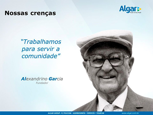 Essas características resumem o que é a Algar, que há 65 anos começou com um engenheiro, Luis Alberto Garcia, atual presidente de honra do conselho de administração do Grupo, e que hoje emprega cerca de 24 mil funcionários – mais de 4.000 só na Algar Telecom.