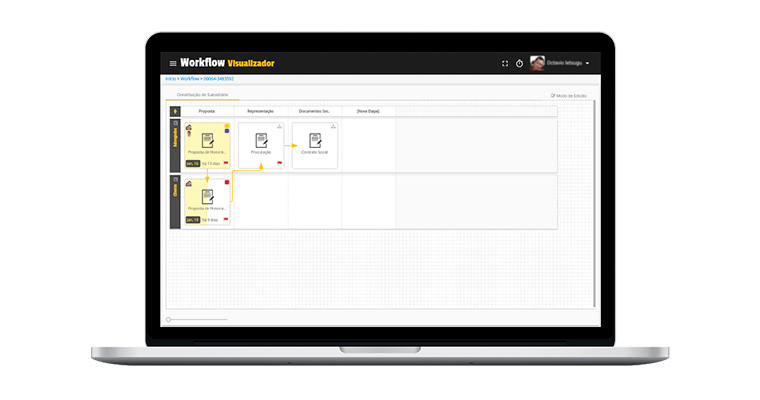 Com uma interface simples e intuitiva de fluxogramas (BPM), é possível acompanhar e controlar qualquer tipo de operação por meio de fluxos de trabalho pré-definidos, discutidos e refinados pela sua equipe, diminuindo a incidência de erros humanos, aumentando a eficiência de suas operações e automatizando etapas até então conduzidas manualmente.