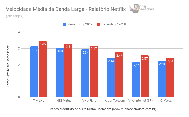 Na comparação com dezembro de 2017, o salto de velocidade das teles de banda larga fixa no relatório da Netflix foi ainda mais expressivo, com destaque para Vivo Internet, presente no estado de São Paulo. Apesar de a infraestrutura ser menos robusta que a presente no restante do Brasil (graças a antiga rede de ponta da GVT), a operadora conseguiu fazer um bom upgrade de velocidade no estado mais populoso do país.