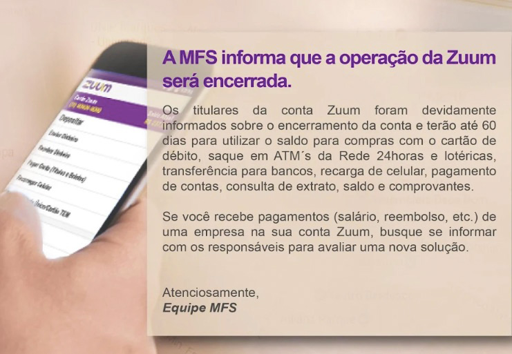 A Zuum, join-venture formada pela Vivo e Mastercard para a administração de contas digitais, encerrou suas atividades em dezembro do ano passado.