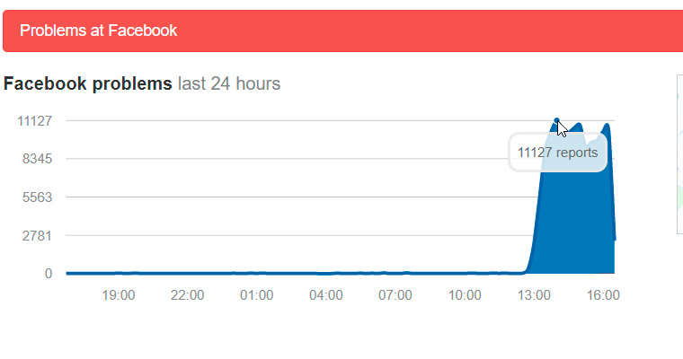Segundo o Down Detector, site que avalia o andamento de conexões em tempo real, o pico no número de reclamações de problemas com o Facebook ocorreu às 13h, horário em que um pouco mais de 11 mil reports foram confirmados.