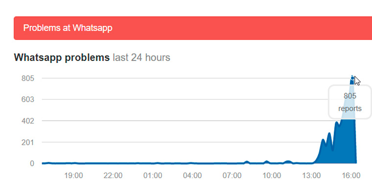 Já o WhatsApp, entre as três redes, é a que menos reclamações foram registradas em seu momento de pico (805 reclamações).