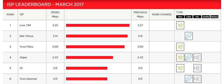 Não é apenas a Oi que chama atenção no ranking, a segunda colocada, a Algar também merece uma menção, já que na edição de março de 2017 do Netflix ISP a posição das duas era decepcionante.