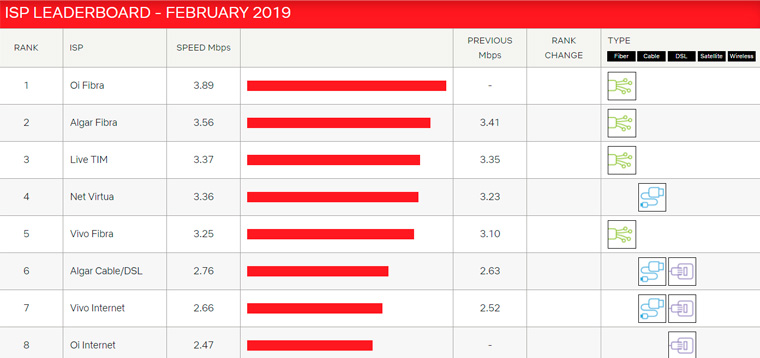 Comentando estritamente os fatos que o famoso ranking Netflix ISP revela em sua edição mais recente, a Oi aparece na liderança na análise de fevereiro, registrando a velocidade média de 3.89 Mbps.