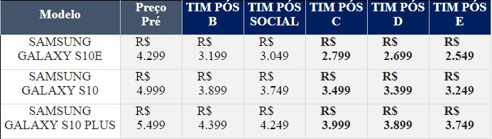 A pré-venda da TIM acontece na loja virtual. Quem comprar os modelos S10 e S10e em qualquer plano ganhará como brinde os Galaxy Buds, fones de ouvido sem fio da marca. Já quem adquirir o S10+ leva gratuitamente um smartwatch Galaxy Active.
