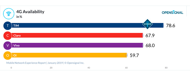 Tirando o resultado do desempenho da rede, o relatório da Open Signal também fala sobre a disponibilidade do 4G. Nesse quesito a TIM se sagrou campeã.