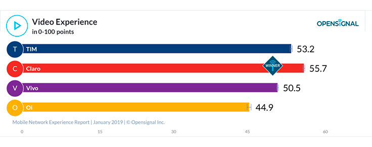 O primeiro quesito que a Claro vence foi experiência de vídeo. Aqui a Open Signal leva em consideração a forma como a rede desempenha em relação a qualidade do streaming em dispositivos móveis.