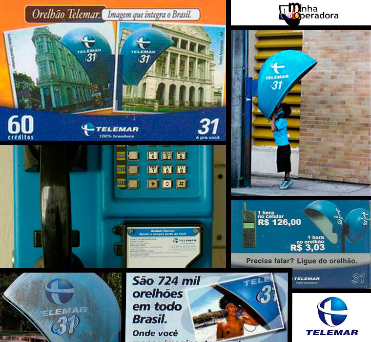 Uma marca registrada da Telemar eram os milhares de orelhões com a concha na cor azul. Eles eram adesivados na lateral com o logo da Telemar e o DDD 31. A companhia se referia a eles como uma “gigantesca onda azul”.
