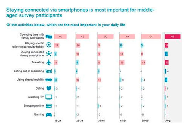 No Brasil, onde o levantamento ouviu 1.021 consumidores, 63% dos indivíduos com menos 35 anos declararam estar dispostos a sacrificar um ou mais hábitos de consumo para garantir gastos com smartphones e contratos com operadoras. Entre os indivíduos com mais de 35 anos, o índice foi de 44%.