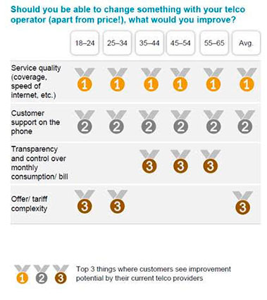 A pesquisa da Oliver Wyman também avaliou o que o brasileiro melhoraria em sua operadora, além do preço. A resposta mais citada diz respeito à qualidade dos serviços (cobertura e velocidade de internet), seguida por serviço de atendimento ao cliente por telefone, mais transparência nas cobranças da fatura e menos complexidade nos cálculos das tarifas e ofertas.