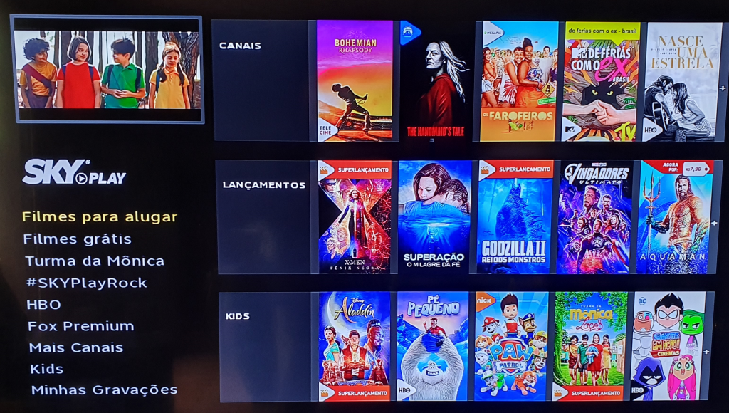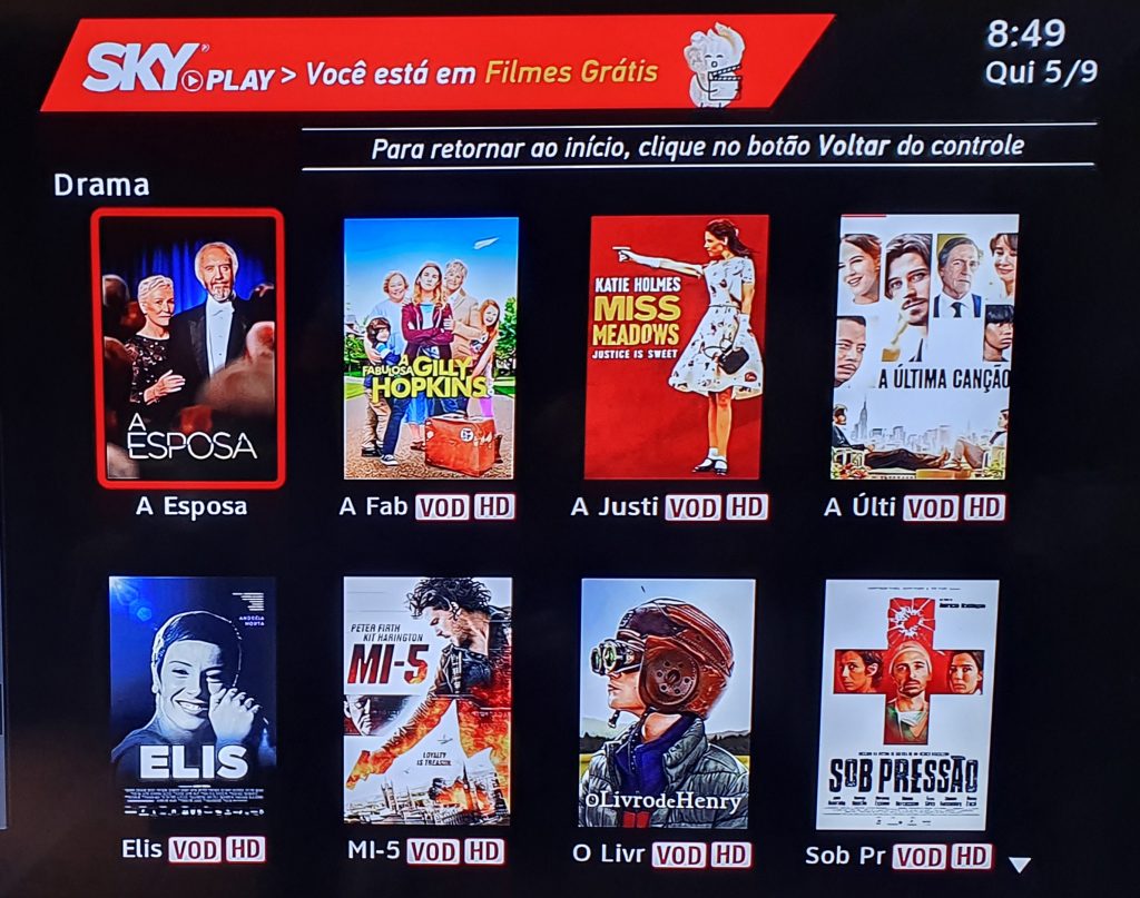 Entretanto, na TV, há um canal exclusivo do SKY Play para divulgação dos filmes gratuitos para os assinantes. Basta digitar 1016 no controle e conferir as opções.