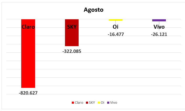 Todas as prestadoras apresentaram quedas no mês de agosto, de acordo com os últimos dados da Anatel.