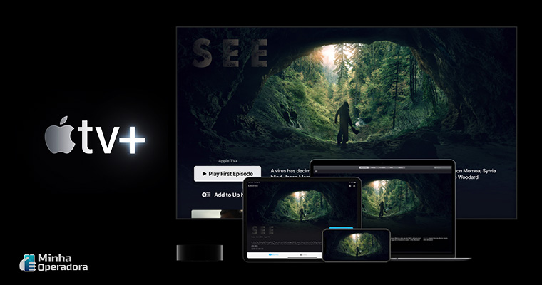 Já os usuários do iPhone ou qualquer outro dispositivo da Apple acessavam normalmente o menu da Apple TV, com as séries do Apple TV+ disponíveis. Inclusive com episódios gratuitos.