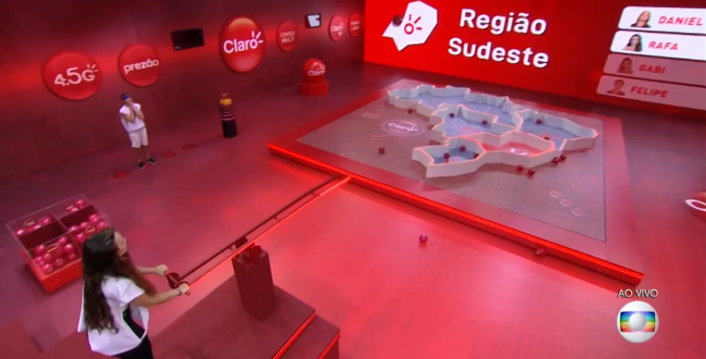 A prova colocou cada um para arremessar bolas que representavam diferentes serviços da operadora (4.5G, banda líder, Claro TV e Prezão) em diferentes regiões do Brasil.