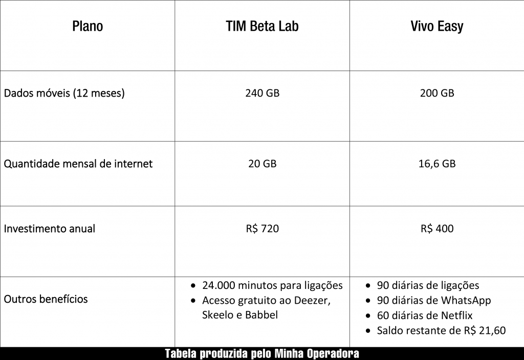 Já o TIM Beta pode ser um investimento mensal de R$ 60, apesar de termos levado em consideração o gasto anual que cada usuário tem com o plano de telefonia móvel.