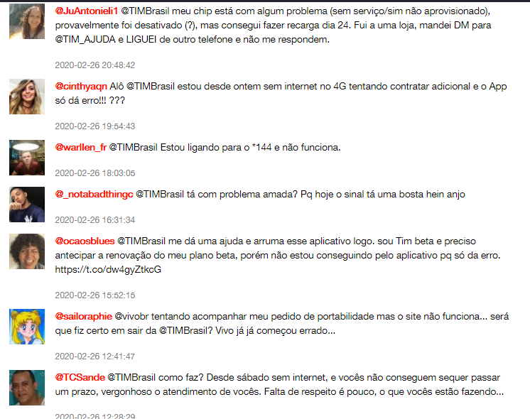 A quarta-feira de cinzas, 26, foi caótica para quem precisava contar com os serviços de telecomunicações da TIM. Segundo relatos de usuários da operadora, até mesmo o atendimento telefônico esteve indisponível para prestar esclarecimentos.