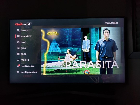 O antigo azul claro deu espaço para um menu mais escuro, na cor preta, com a marca “Claro net hd”, mas o tradicional vermelho da operadora também se faz presente.