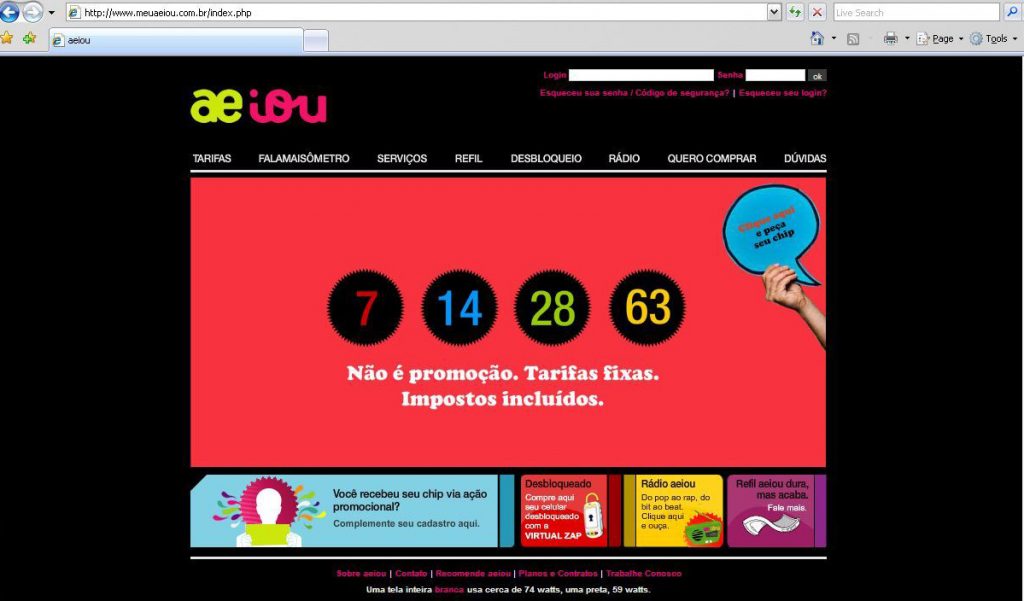 Em nota, a assessoria de imprensa destacava: “O modelo de negócios da Aeiou vai revolucionar a telefonia móvel brasileira”. A promessa é que o usuário conquistaria o melhor de dois mundos, o controle do pré-pago com as melhores tarifas do pós-pago.