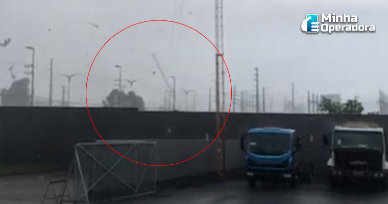 Moradores registram os momentos de tensão, com postes caindo, fachadas de construções sendo destruídas e objetos voando.