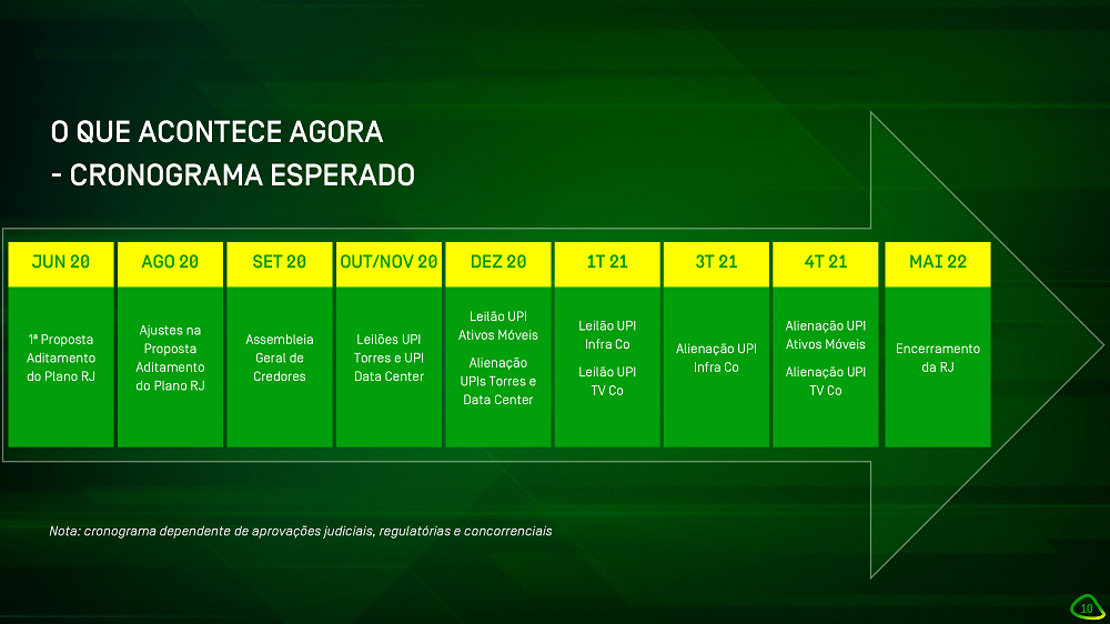 O encerramento da recuperação judicial é previsto para maio de 2022. Confira o calendário de planejamento da operadora: