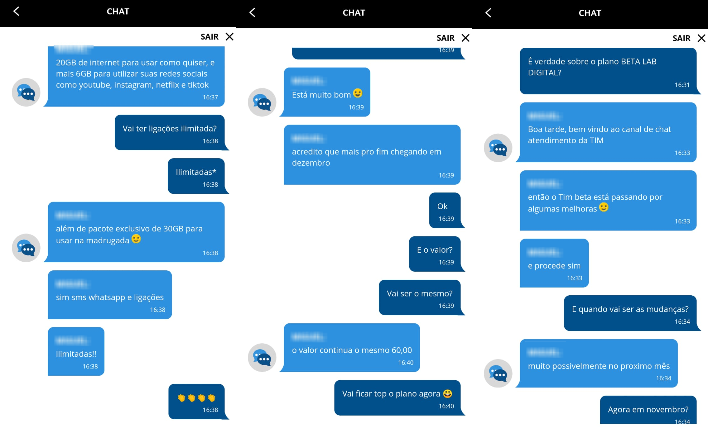 No chat, a atendente limitou-se a dizer que não há nenhuma atualização no TIM Beta até o momento. Assim que tiver, será informado no site.