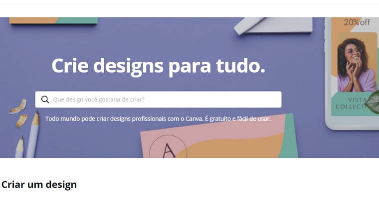 O Canva é um aplicativo voltado para edição de fotos e criação de conteúdos visuais para a web de forma geral. Por meio dele é possível criar layouts, imagens, apresentações e até mesmo vídeos.