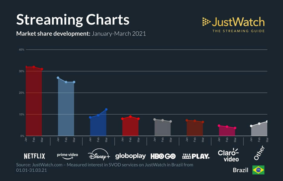 Em 31 de março deste ano, esta participação subiu para 10%, ultrapassando os serviços rivais Globoplay, HBO Go e Telecine.