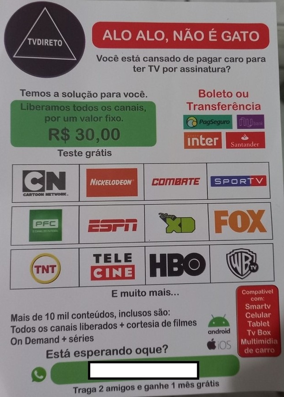 Para os que não possuem, o mercado ilegal oferece dispositivos com softwares ilegais que conectam à internet e disponibilizam o acesso.