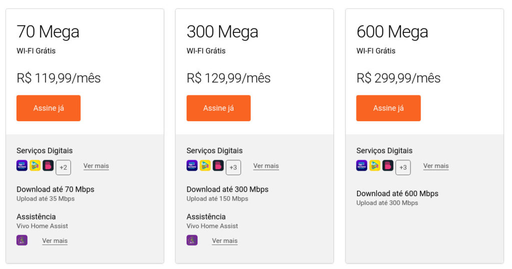 Agora, em São Paulo/SP, por exemplo, a Vivo disponibiliza apenas três opções de planos, conforme a seguir:
