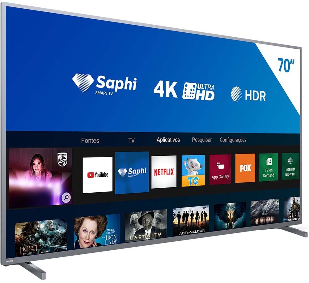 Não muito distante em valor dos modelos anteriores está uma Philips 4K de 70 polegadas.